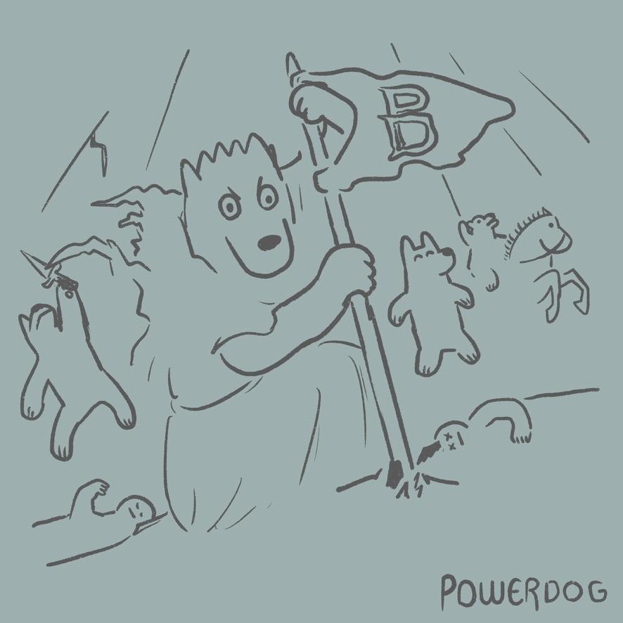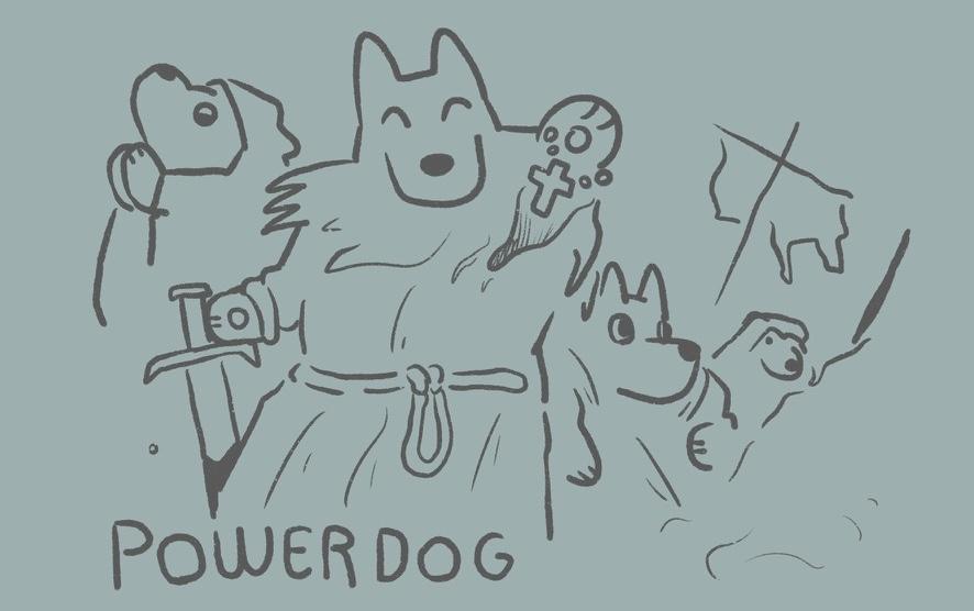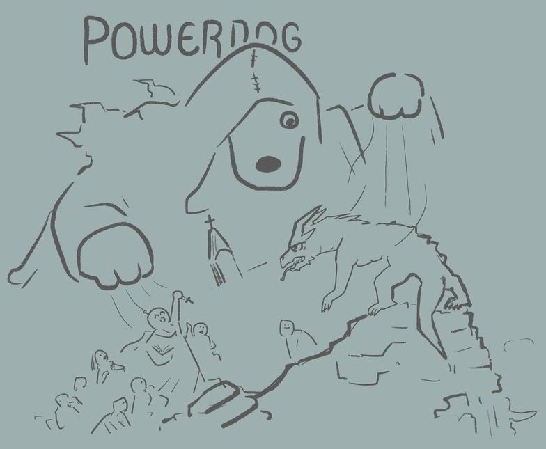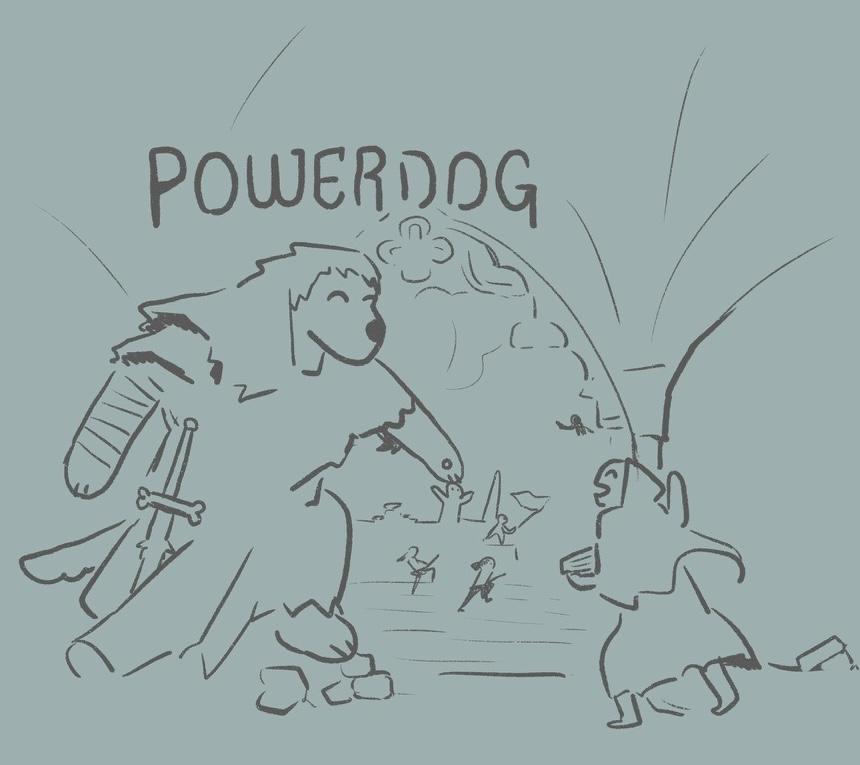 I can't depict awesome martyr wolves like the artists behind these artworks can, so I use "Powerdog" in my drawings, one level down on the fierceness scale.