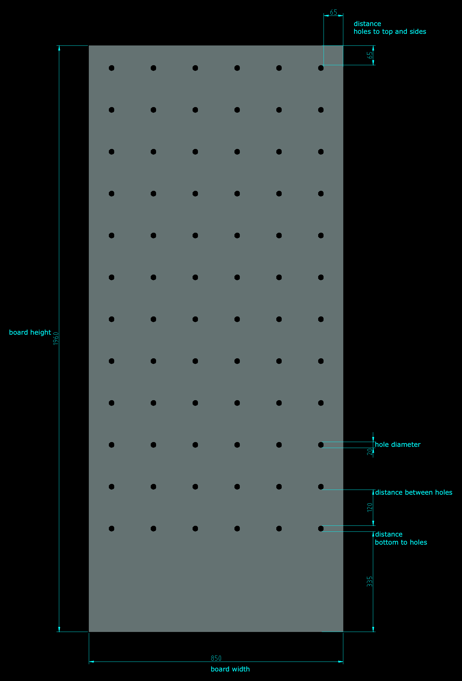 The distance between the holes are chosen by playing around with Auto Layout in Figma... Even if the holes across boards will have an extra centimeter between them, it is not going to be a big problem because the boards are going to be significantly longer.
