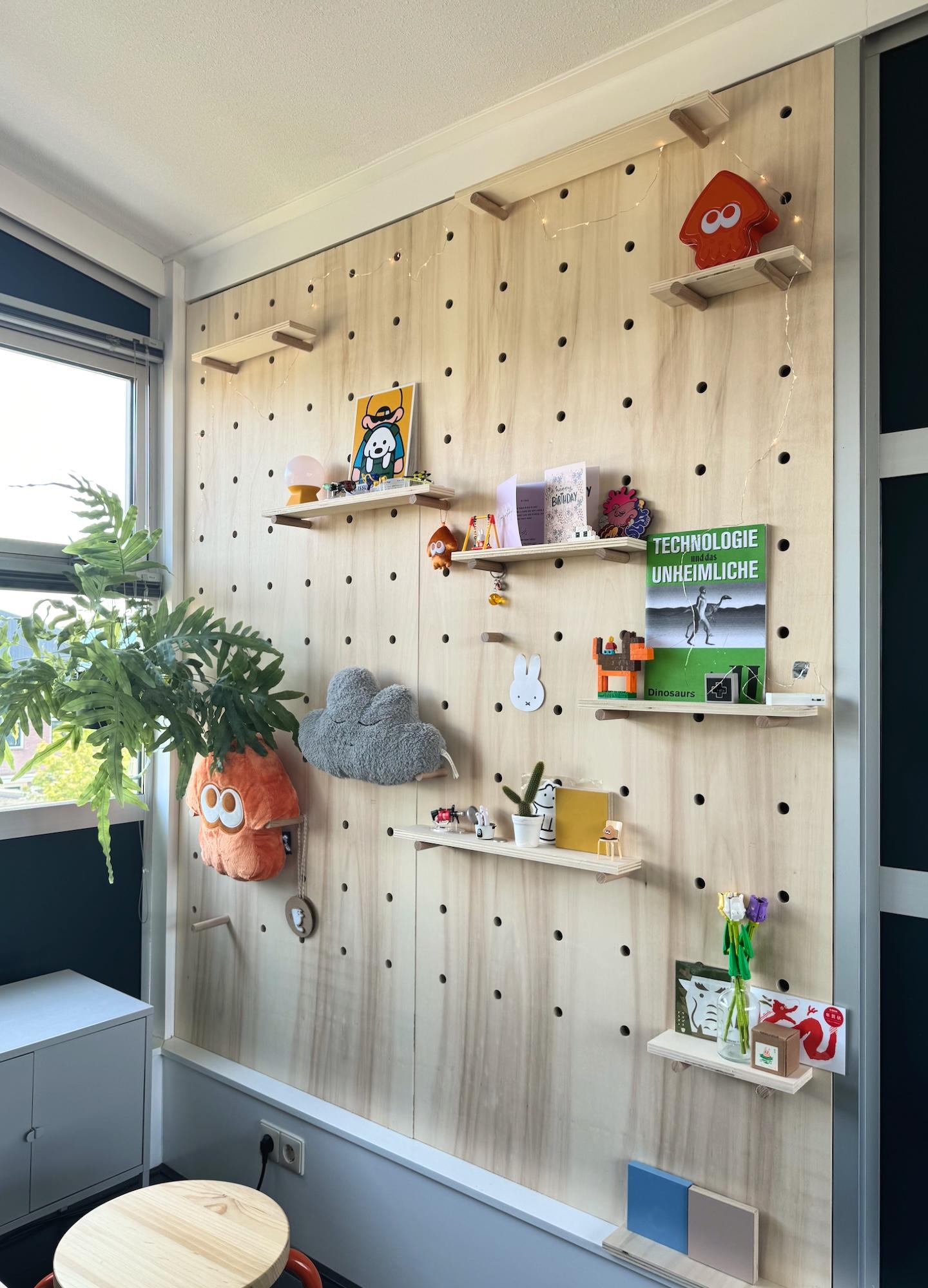 I still have two more sections that can be filled with these pegboards. I am still thinking if I should use the same material across or add some variations. I am also thinking about a few extra components that can be fit onto the pegboard such as a universal hanger for holding headphones, plants, or lamps.