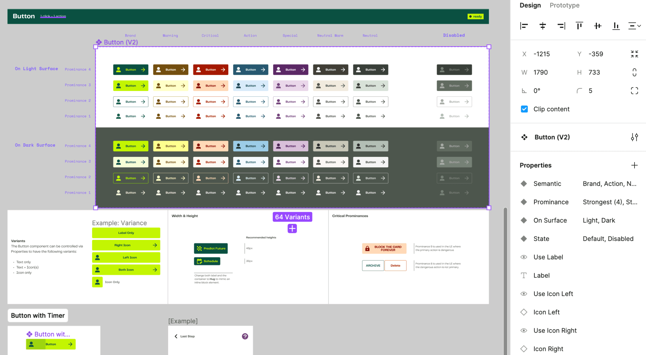 Instead of describing visual importance as "Primary, secondary", we adopt a Prominence system. Each color are assigned a semantic meaning, and is further expanded based on interaction like here in Button - Semantic.