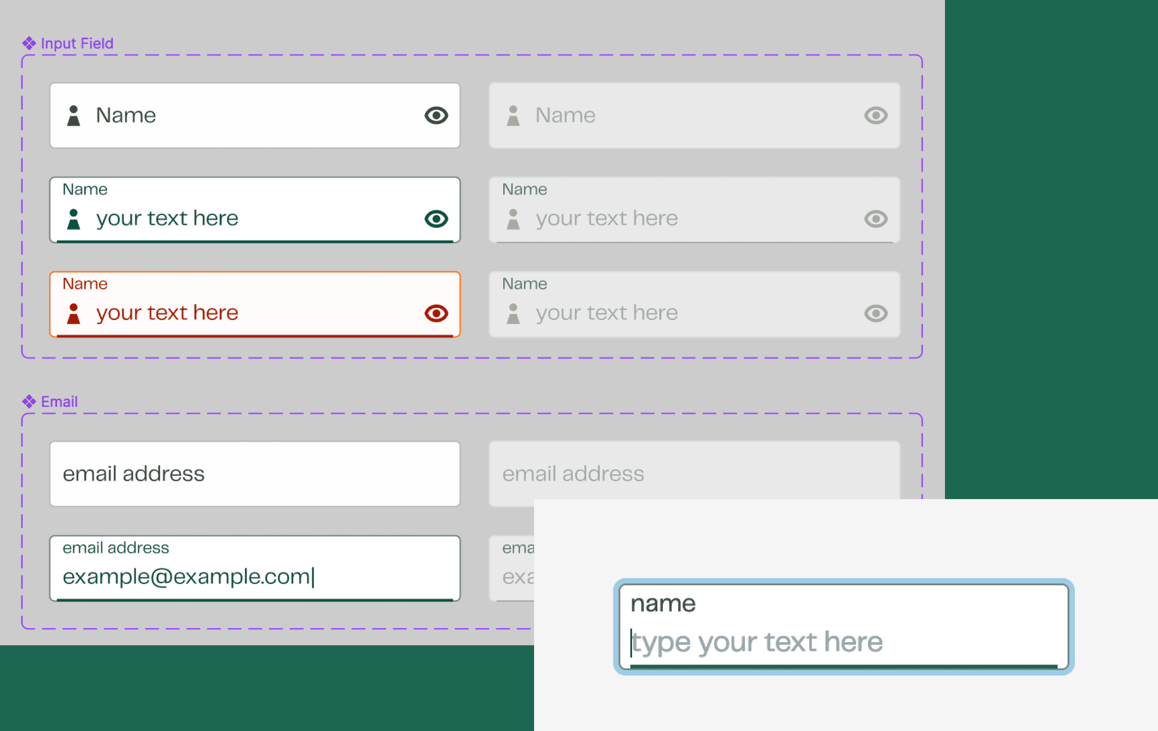 Some of the components can’t be described purely in CSS – they have some fancy internal layout that needs to be manipulated when the state changes. Input fields in our design system is one of this type of components.